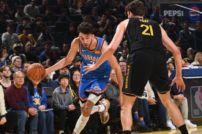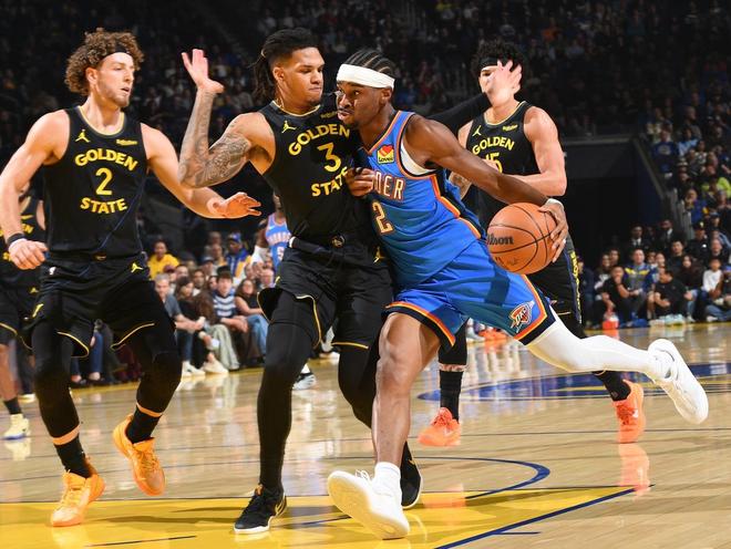 北京时间1月3日,NBA常规赛,勇士坐镇主场迎击雷霆。本场比赛之前,勇士18胜16负排名西部第8,这段时间,库里的状态很不错,过去9场比赛场均砍下 30.1分、4.8助攻、4.4篮板,投篮命中率 46.3%,三分命中率 40.0%,罚球命中率 93.0%,场均出战 33.7分钟。二当家巴特勒虽然产量一般,但效率同样很高,接近180俱乐部了,勇士就是角色球员自主进攻能力有限。另一边的雷霆队,本场比赛之前,29胜5负排名西部第一,他们仍然是今年最有冠军相的一支队伍,攻防效率都在联盟前5,全员都有一定的自主进攻能力。