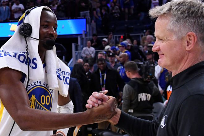 但没办法,谁让勇士队今天的三位核心主力全部缺席了呢?勇士队今天的首发,是波杰姆斯基、穆迪、理查德、桑托斯和波斯特。今天库里因为脚踝受伤不能打,巴特勒因为生病不能打,而追梦格林轮休不能打,看到这里是不是有些怀疑,追梦是因为库里不打他才不打的?所以,勇士队今天的大名单只有9人。因此,名记Marc Stein报道,库明加将在今天出战。另外,球队主教练科尔也确认了这一消息,表示:“当然,他会上场的。”要知道在此之前,库明加已经被连续DNP6场了。但情况并非如此,科尔说完没多久,库明加那边出问题了。