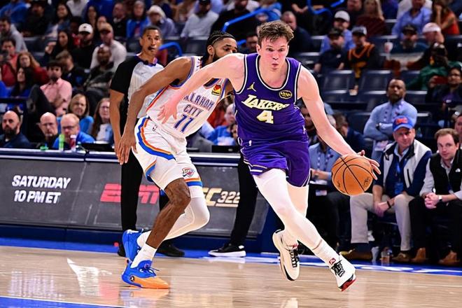 本场比赛中,湖人的替补侧翼新星道尔顿-克内克特(Dalton Knecht)非常罕见地在比赛常规阶段起到了一些作用。克内克特全场出场10分56秒,投篮5中2,三分线外4中2,得到了6分,还有2次犯规,正负值为+5。大家都知道,克内克特在其他方面的能力非常有限,没有基本的传球视野,没有出色的防守能力,在其他方面都实在是没有办法为球队提供任何的帮助和支持,但至少在本场比赛中,他还是命中了两记三分,在有限的出场时间内在进攻端为球队提供了一定的帮助和支持。克内克特在本场比赛中也算是完成了自己应该完成的任务,在场上起到了自己的作用,并且为球队的胜利做出了不小的贡献,至少他也是没有拖球队后腿了。
