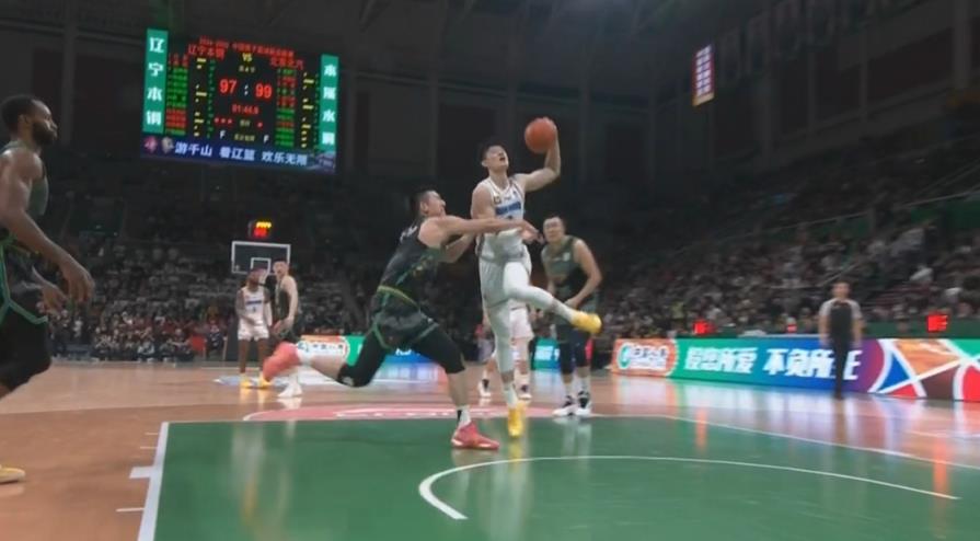 曾凡博起飞欲扣 付豪凶狠犯规将其拽倒 裁判回看后普通犯规
